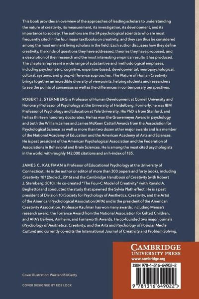 This book provides an overview of the approaches of leading scholars to understanding the nature of creativity, its measurement, its investigation, its development, and its importance to society. The authors are the twenty-four psychological scientists who are most frequently cited in the four major textbooks on creativity, and they can thus be considered among the most eminent living scholars in the field. Authors discuss how they define creativity, the kinds of questions they have addressed, theories they have proposed, and a description of their research and the most interesting empirical results it has produced. The chapters represent a wide range of substantive and methodological emphases, including psychometric, cognitive, expertise-based, developmental, neuropsychological, cultural, systems, and group-difference approaches. The Nature of Human Creativity brings together an incredible diversity of viewpoints, helping students and researchers to see the points of consensus as well as the differences in contemporary perspectives.