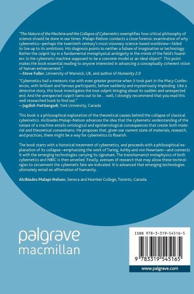 The book starts with a historical and theoretical articulation of cybernetics in order to proceed with a philosophical explanation of its collapse-emphasizing the work of Alan Turing, Ross Ashby and John von Neumann. Subsequently, Malapi-Nelson unveils the common metaphysical signature shared between cybernetics and emergent technologies, identifying this signature as transhumanist in nature. Finally, avenues of research that may allow these disruptive technologies to circumvent the cybernetic fate are indicated. It is proposed that emerging technologies ultimately entail an affirmation of humanity.