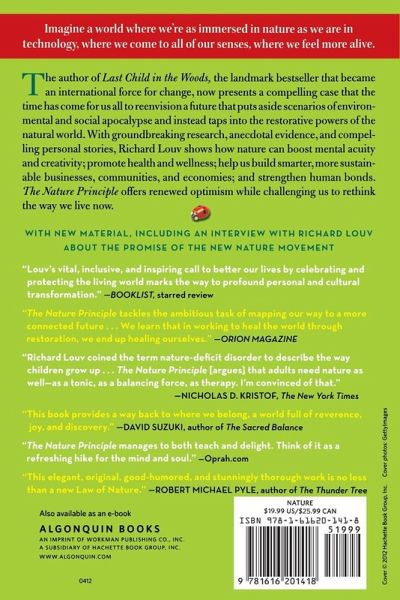 Looks at the restorative powers of the natural world to boost mental acuity and creativity; promote health and wellness; build smarter and more sustainable businesses, communities, and economies; and strengthen human bonds. Supported by research, anecdotal evidence, and personal stories, the author challenges us to rethink the way we live.
