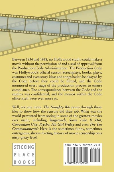 Between 1934 and 1968, no Hollywood studio could make a movie without the permission of and a seal of approval from the Production Code Administration. The Production Code was Hollywood's official censor. Screenplays, books, plays, costumes and even story ideas and songs had to be okayed by the Code before they could be filmed, and the Code monitored every stage of the production process to ensure compliance. The correspondence between the Code and the studios was confidential, and the memos within the Code office itself were even more so. Well, not any more. The Naughty Bits pores through those files to show how the censors did their job. What was the world prevented from seeing in some of the greatest movies ever made, including Stagecoach, Some Like It Hot, Convention City, Psycho, His Girl Friday and even The Ten Commandments? Here is the sometimes funny, sometimes outrageous, always riveting history of movie censorship on a nitty-gritty level.