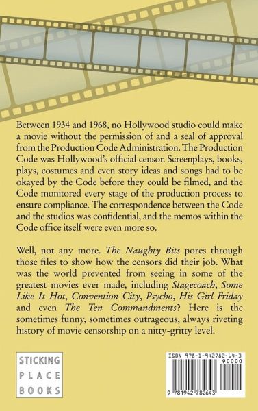 Between 1934 and 1968, no Hollywood studio could make a movie without the permission of and a seal of approval from the Production Code Administration. The Production Code was Hollywood's official censor. Screenplays, books, plays, costumes and even story ideas and songs had to be okayed by the Code before they could be filmed, and the Code monitored every stage of the production process to ensure compliance. The correspondence between the Code and the studios was confidential, and the memos within the Code office itself were even more so. Well, not any more. The Naughty Bits pores through those files to show how the censors did their job. What was the world prevented from seeing in some of the greatest movies ever made, including Stagecoach, Some Like It Hot, Convention City, Psycho, His Girl Friday and even The Ten Commandments? Here is the sometimes funny, sometimes outrageous, always riveting history of movie censorship on a nitty-gritty level.