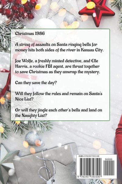 Christmas 1986 A string of assaults on Santa ringing bells for money hits both sides of the river in Kansas City. Joe Wolfe, a freshly minted detective, and Elle Harris, a rookie FBI agent, are thrust together to save Christmas as they unwrap the mystery. Can they save the day? Will they follow the rules and remain on Santa's Nice List? Or will they jingle each other's bells and land on the Naughty List?