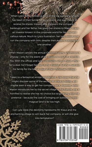 Most Popular Books On Netgalley in 2022 #1 in Romance #1 in New Adult #1 in Sci-fi/Fantasy Being Naughty Has Never Been So Nice! When Lyla's father retired as CEO of the toy company which has been in their family for generations, she was meant to receive his shares. Instead, she discovers the company is bankrupt and her father has given her shares to Mason Klaus, an investor known in the corporate world for his cold and callous nature. Much to Lyla's frustration, her only option is to run the company with him, despite their evident loathing for one another. When Mason cancels the annual Christmas party, Lyla throws it anyway - only for the event of the season to result in a terrible fire. With the offices and Lyla's credibility ruined, Mason offers her a deal: he'll forget her part in the disaster, but she must join his family for the twelve days of their Christmas holidays. Taken to a fantastical winter wonderland, Lyla hopes that she might discover some of the secrets Mr Klaus is hiding, and maybe even a way to get her company back. However, when Mason introduces her to the secret village as his fiancée, she is horrified to realise she has no choice but to go along with the pretence - because the cost of bringing an outsider to their magical land is far too high. Can Lyla resist the devilishly handsome Mr Klaus and the enchanting village to win back her company, or will she give into temptation?