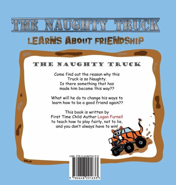The Naughty Truck.... Come have a read and find out the reason why this Truck is so Naughty. Is there something that has made him this way?? What will he do to change his ways and learn how to be a good friend again?? This book is written by First time Child Author Logan Furnell to teach how to play fairly, not to lie, and you don't always have win! Hope You Enjoy Logan Furnell