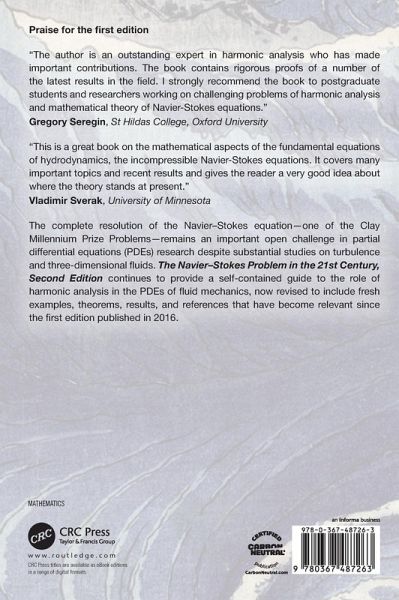The complete resolution of the Navier-Stokes equation-one of the Clay Millennium Prize Problems-remains an important open challenge in partial differential equations (PDEs) research despite substantial studies on turbulence and three-dimensional fluids. The Navier-Stokes Problem in the 21st Century, Second Edition continues to provide a self-contained guide to the role of harmonic analysis in the PDEs of fluid mechanics, now revised to include fresh examples, theorems, results, and references that have become relevant since the first edition published in 2016.