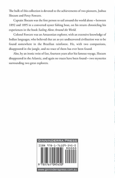 The bulk of this collection is devoted to the achievements of two pioneers, Joshua Slocum and Percy Fawcett. Captain Slocum was the first person to sail around the world alone - between 1892 and 1895 in a converted oyster fishing boat, on his return chronicling his experiences in the book Sailing Alone Around the World. Colonel Fawcett was an Amazonian explorer, with an extensive knowledge of Indian languages, who believed that an as-yet undiscovered civilisation was to be found somewhere in the Brazilian rainforest. He, with two companions, disappeared in the jungle, and no trace of them has ever been found. Also, by an ironic twist of fate, fourteen years after his famous voyage Slocum disappeared in the Atlantic, and again no traces have been found - two mysteries surrounding two great explorers.