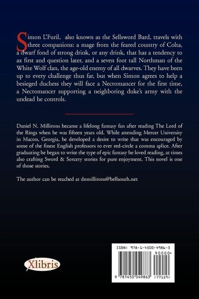 Simon L'Furil, also known as the Sellsword Bard, travels with three companions: a mage from the feared country of Colta, a dwarf fond of strong drink, or any drink, that has a tendency to ax first and question later, and a seven foot tall Northman of the White Wolf clan, the age-old enemy of all dwarves. They have been up to every challenge thus far, but when Simon agrees to help a besieged duchess they will face a Necromancer for the first time, a Necromancer supporting a neighboring duke's army with the undead he controls.