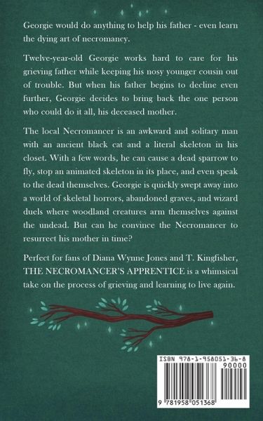 Georgie would do anything to help his father - even learn the dying art of necromancy. Twelve-year-old Georgie works hard to care for his grieving father while keeping his nosy younger cousin out of trouble. But when his father begins to decline even further, Georgie decides to bring back the one person who could do it all, his deceased mother. The local Necromancer is an awkward and solitary man with an ancient black cat and a literal skeleton in his closet. With a few words, he can cause a dead sparrow to fly, stop an animated skeleton in its place, and even speak to the dead themselves. Georgie is quickly swept away into a world of skeletal horrors, abandoned graves, and wizard duels where woodland creatures arm themselves against the undead. But can he convince the Necromancer to resurrect his mother in time? Perfect for fans of Diana Wynne Jones and T. Kingfisher, THE NECROMANCER'S APPRENTICE is a whimsical take on the process of grieving and learning to live again.