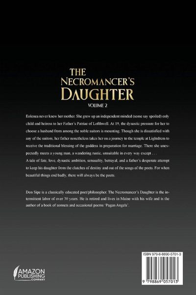 Eolenea never knew her mother. She grew up an independent minded (some say spoiled) only child and heiress to her Father's Patriae of Lofthwell. At 19, the dynastic pressure for her to choose a husband from among the noble suitors is mounting. Though she is dissatisfied with any of the suitors, her father nonetheless takes her on a journey to the temple at Lightdrem to receive the traditional blessing of the goddess in preparation for marriage. There she unexpectedly meets a young man, a wandering rustic, unsuitable in every way except . . . A tale of fate, love, dynastic ambition, sensuality, betrayal, and a father's desperate attempt to keep his daughter from the clutches of destiny and out of the songs of the poets. For when beautiful things end badly, there will always be the poets.