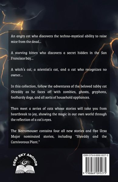 An angry cat who discovers the techno-mystical ability to raise mice from the dead... A starving kitten who discovers a secret hidden in the San Francisco bay... A witch's cat, a scientist's cat, and a cat who recognizes no owner... In this collection, follow the adventures of the beloved tabby cat Shreddy as he faces off with zombies, ghosts, gryphons, foolhardy dogs, and all sorts of household appliances. Then meet a series of cats whose stories will take you from heartbreak to joy, showing the magic in our own world through the reflection of a cat's eyes. Necromouser contains four all new stories and five Ursa Major nominated stories, including "Shreddy and the Carnivorous Plant." Contains the following stories by Mary Lowd: The Necromouser Shreddy and the Zomb-dogs Shreddy and the Silver Egg Shreddy and the Christmas Ghost Shreddy and the Dancing Dragon Shreddy and the Carnivorous Plant Songs of Fish and Flowers Katelynn the Mythic Mouser The Wharf Cat's Mermaid Magtwilla and the Mouse Cold Tail and the Eyes All the Cats of the Rainbow In a Cat's Eyes
