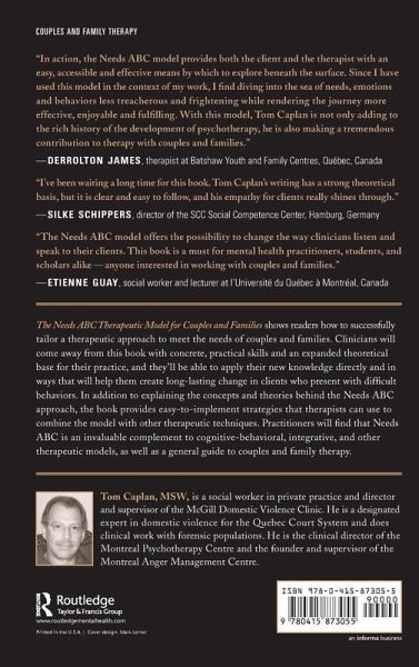 The Needs ABC Therapeutic Model for Couples and Families provides beginning clinicians with concrete, practical skills and expanded theoretical base for their practice. Readers will be able to apply their new knowledge directly and in ways that will help them create long-lasting change in clients who present with difficult behaviors.