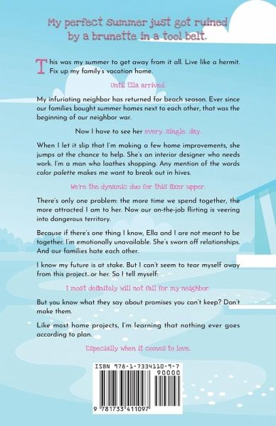 My perfect summer just got ruined by a brunette in a tool belt. This was my summer to get away from it all. Live like a hermit. Fix up my family's vacation home. Until Ella arrived. My infuriating neighbor has returned for beach season. Ever since our families bought summer homes next to each other, that was the beginning of our neighbor war. Now I have to see her every. single. day. When I let it slip that I'm making a few home improvements, she jumps at the chance to help. She's an interior designer who needs work. I'm a man who loathes shopping. Any mention of the words color palette makes me want to break out in hives. We're the dynamic duo for this fixer upper. There's only one problem: the more time we spend together, the more attracted I am to her. Now our on-the-job flirting is veering into dangerous territory. Because if there's one thing I know, Ella and I are not meant to be together. I'm emotionally unavailable. She's sworn off relationships. And our families hate each other. I know my future is at stake. But I can't seem to tear myself away from this project...or her. So I tell myself: I most definitely will not fall for my neighbor. But you know what they say about promises you can't keep? Don't make them. Like most home projects, I'm learning that nothing ever goes according to plan. Especially when it comes to love. A sweet romantic comedy that combines home renovation and a beach romance!