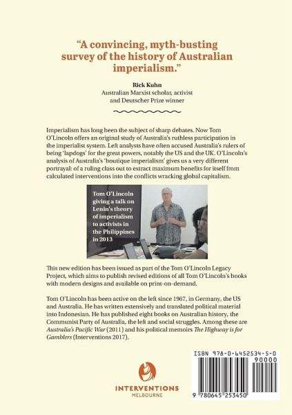 Imperialism has long been the subject of sharp debates. Now Tom O'Lincoln offers an original study of Australia's ruthless participation in the imperialist system. Left analysts have often accused Australia's rulers of being 'lapdogs' for the great powers, notably the US and the UK. O'Lincoln's analysis of Australia's 'boutique imperialism' gives us a very different portrayal: of a ruling class out to extract maximum benefits for itself from calculated interventions into the conflicts wracking global capitalism. This new edition has been issued as part of the Tom O'Lincoln Legacy Project, which aims to publish revised editions of all Tom O'Lincoln's books with modern designs and available on print-on-demand.