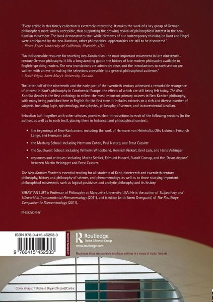 'The appearance of this collection is a major event in the study of nineteenth century philosophy. ... [T]he volume's achievement is impressive, and twofold: (1) for the first time, it brings together a representative collection of Neokantian texts in English, and (2) it offers translations of essential material that has been unavailable to English readers. ... It is probably the biggest step forward for the understanding of Neokantianism in the Anglophone world to date.' - Garrett Zantow Bredeson, Studia Phaenomenologica