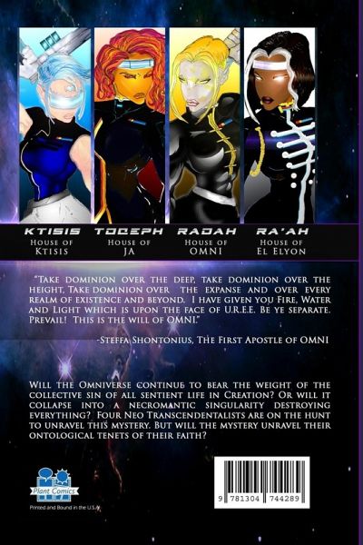 Will the Omniverse continue to bear the weight of the collective sin of all sentient life in Creation? Or will it collapse into a necromantic singularity destroying everything in it wake? Four Neo Transcendentalists are on the hunt to unravel this mystery. But will the mystery unravel their ontological tenets of their faith? Embark on an eerie journey as our four heroines confront the chilling unknown beyond the boundaries of the observable Omniverse.