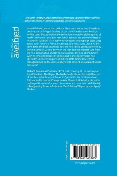 Preface Acknowledgements Notes on Contributors Introduction; R.Robison PART I: NEO-LIBERALISM AND THE MARKET STATE: CONCEPTS AND ISSUES Neo-Liberalism and the Market State: What is the Idea Shell?; R.Robison Two Faces of Neo-Liberalism; A.Gamble PART II: NEO-LIBERLISM AND ITS GLOBAL TRANSIT Neo-Liberalism in Latin America: Legitimacy, Depoliticization and Technocratic Rule in Chile; P.Silva Neo-Liberalism in the Russian Federation; H.Oversloot Corruption and Neo-Liberal Reform: Markets and Predatory Power in Indonesia and Southeast Asia; V.R.Hadiz Neo-Liberalism and the Persistence of Clientism in Africa; G.Harrison Serving the Market or Serving the Party: Neo-Liberalism in China; S.Breslin PART III: CONFLICT WITHIN THE NEO-LIBERAL CAMP The Wall Street, Treasury, IMF Complex After Asia: Neo-Liberalism in Decline? B.Thirkell-White What's in a Name? Neo-Conservative Ideology, Neo-Liberalism and Globalization; H.Akram-Lodhi Mr Bush and Neo-Liberalism; W.K.Tabb PART IV: THE NEO-LIBERAL FUTURE Neo-Liberalism and Transparency: Political Versus Economic Liberalism; G.Rodan European Social Democracy and the Neo-Liberal Global Agenda: A Resurgent Influence or Recapitulation; W.Hout Economic Constitutionalism, Neo-Liberalism and the New Welfare Governance; K.Jayasuriya Bibliography Index