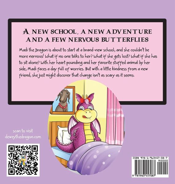 Starting something new can be scary-especially when it means leaving behind what's familiar. Madi the Dragon is nervous about her first day at a new school. What if she gets lost? What if no one talks to her? What if she has to eat lunch all alone? With her heart racing and her favorite stuffed animal, Pinkie, by her side, Madi isn't sure she's ready for this big change. But then she meets Dewey, a friendly dragon who helps her when she needs it most. A little kindness, a shared love of chocolate chip cookies, and a game of tag at recess just might be what Madi needs to start feeling at home. More than just a story, The Nervous Dragon includes a parent page with tips to help kids work through big changes, plus discussion questions to spark meaningful conversations. Whether your child is facing a new school, a big move, or just something unfamiliar, this book is a great way to remind them they're not alone.