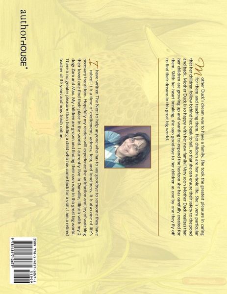 Mother Duck's dream was to have a family. She took the greatest pleasure in caring for them and teaching them. Her children are her whole life. She is very particular that her children follow behind her, beak to tail, so that she can ensure their safety to the pond and back. Mother Duck is so happy with her new family! Very soon Mother Duck realizes that her children are growing up and wanting to expand the horizon she has carefully created for them. With her heart breaking, she says good-bye to her children as one by one they fly off to find their dreams in this great big world.