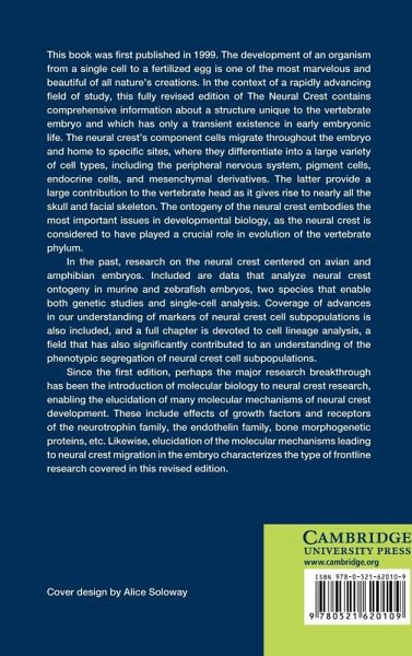 This 1999 edition of The Neural Crest contains comprehensive information about the neural crest, a structure unique to the vertebrate embryo, which has only a transient existence in early embryonic life. The ontogeny of the neural crest embodies the most important issues in developmental biology, as the neural crest is considered to have played a crucial role in evolution of the vertebrate phylum. Data that analyse neural crest ontogeny in murine and zebrafish embryos have been included in this revision. This revised edition also takes advantage of recent advances in our understanding of markers of neural crest cell subpopulations, and a full chapter is now devoted to cell lineage analysis. The major research breakthrough since the first edition has been the introduction of molecular biology to neural crest research, enabling an elucidation of many molecular mechanisms of neural crest development. This book is essential reading for students and researchers in developmental biology, cell biology, and neuroscience.