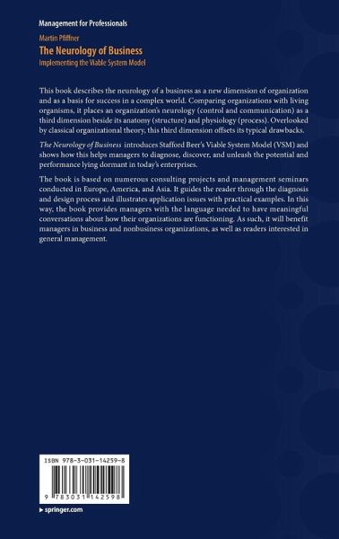 This book describes the neurology of a business as a new dimension of organization and as a basis for success in a complex world. Comparing organizations with living organisms, it places an organization's neurology (control and communication) as a third dimension beside its anatomy (structure) and physiology (process). Overlooked by classical organizational theory, this third dimension offsets its typical drawbacks.