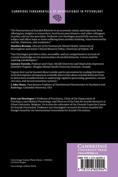 This book offers an accessible account of the neuroscience behind suicidal behavior and its potential for prevention. Neuroscience opens up opportunities to dispel myths that continue to hinder suicide prevention by helping people to understand suicide and providing effective prevention methods.