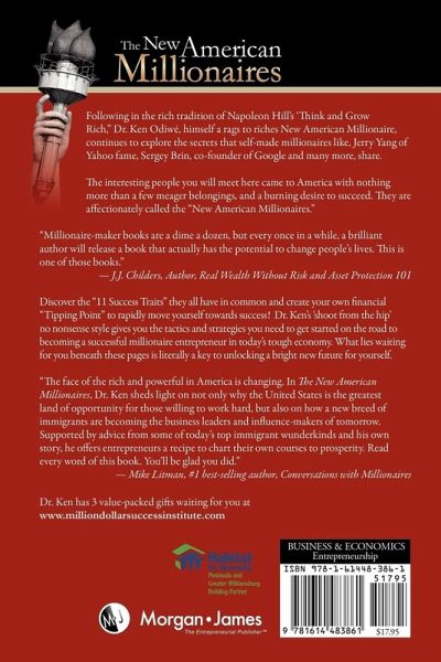 The New American Millionaires centers on the stories of a number of high profile immigrant millionaires living and working in the United States. Through their story - and his own story- Dr. Ken reveals the specific qualities and attributes of the American millionaire. These qualities and attributes are then broken down into a series of action steps that an entrepreneur can take to put them on a path of similar success. This model and the strategies it entails are supported by Dr. Ken's own success story, along with nearly a decade of research and interviews with New American Millionaires.