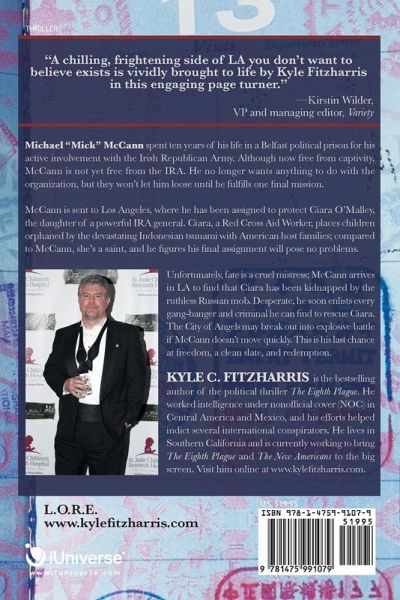 Michael "Mick" McCann spent ten years of his life in a Belfast political prison for his active involvement with the Irish Republican Army. Although now free from captivity, McCann is not yet free from the IRA. He no longer wants anything to do with the organization, but they won’t let him loose until he fulfills one final mission. McCann is sent to Los Angeles, where he has been assigned to protect Ciara O’Malley, the daughter of a powerful IRA general. Ciara, a Red Cross Aid Worker, places children orphaned by the devastating Indonesian tsunami with American host families; compared to McCann, she’s a saint, and he figures his final assignment will pose no problems. Unfortunately, fate is a cruel mistress; McCann arrives in LA to find that Ciara has been kidnapped by the ruthless Russian mob. Desperate, he soon enlists every gang-banger and criminal he can find to rescue Ciara. The City of Angels may break out into explosive battle if McCann doesn’t move quickly. This is his last chance at freedom, a clean slate, and redemption.