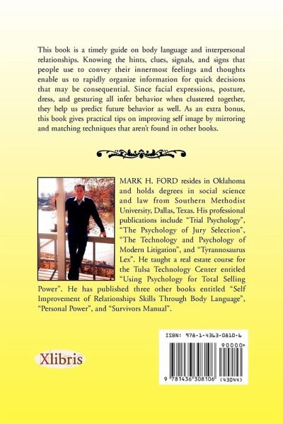 BOOK DESCRIPTION Body language plays an essential role in people's everyday lives. After 9/11 life in America is no longer the same. The world we knew is rapidly changing. New ways of protecting ourselves, doing business, and meeting personal challenges are on everyone's mind. But how can a knowledge of body language help? Based on the latest research available, this book tells readers how to identify the signs, signals, hints, and clues that people use to convey their innermost thoughts, feelings, and attitudes. Readers will learn how to organize information quickly for crucial decisions, better understand the intentions of others, and improve their relationship skills in life and love. OTHER NEW TOPICS: . Ego defenses. . What's in a name. . Negative behavior, controlling people, and dysfunctional relationships. . Self-presentation. EXTRA BONUS-mirror and matching techniques to improve self image and personal empowerment. Facial expressions, posture, dress attire, movements, and gesturing all infer behavior when clustered together. Knowing the hints, signs, and clues people use to convey how they feel about what they are saying is critical to building and maintaining relationships. Also, a knowledge of body language helps us to know ourselves and others better. It's not "what" you say, but "how" you say it. This is a nonfiction, self-improvement book that deals with the critical role of body language in everyday life, and how to use body language to improve your relationships. Since body language is how people convey their feelings and attitudes along with oral communication, it is more important and more reliable then what they say. Oral communication is cloaked in subjectivity, codes, ambiguity, paralinguistics, and disfluency that challenges getting the intended message across. People in law enforcement consider body language a valuable tool in fighting crime, sociologists believe body language is crucial to forming and maintaining relationships, and business people admit that it benefits global business. This book covers the most recent research findings of nonverbal studies on a wide range of diverse topics, including the rationale underlying body language. For an interesting and easy read, it is divided into nine sections and forty chapters with numerous sidebars and subheadings. Part One entitled Relationship Basics lays out the basics of relationships and body language, including the role of intuition, timing, and the five senses in body language interpretation. Also, gender differences are briefly analyzed. Part Two entitled Universal Expressions deals with some of the ways people are similar. Seven facial expressions are common to people in all cultures. For example, a smile is a universal expression although variations have different meanings. Part Three entitled Appearances and Body Language looks at the connection between body language and appearance. The difference between non-elective body language such as the mouth, nose, chin and ears and elective body language such as clothing and accessories are explored. Americans live in a metaphorical world where appearances are everything, say the experts. For instance, who has it and who doesn¡¿t, and does it matter? Part Four entitled Body Movements and Relationships delves into the body language of movements such as posture and walking. Not just etiquette and deportment any longer, posture and walking are rich in nonverbal signals. Posture is the best indicator of a person¡¿s state of mind when communicating. Eye movement is a potent means of communicating nonverbally. For example, eye contact maintained a fraction of a second longer than appropriate can cause physical aggression, but in other contexts it can be a strong signal of sexual attraction. The importance of head moves in public speaking and listening is covered as wel