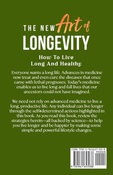Everyone wants a long life. Advances in medicine now treat and even cure the diseases that once came with lethal prognoses. Today's medicine enables us to live long and full lives that our ancestors could not have imagined.We need not rely on advanced medicine to live a long, productive life. Any individual can live longer through the self-determined actions highlighted in this book. As you read this book, review the strategies herein-all backed by science-to help you live longer and be happier by making some simple and powerful lifestyle changes.