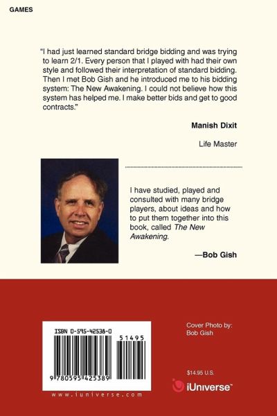 "I had just learned standard bridge bidding and was trying to learn 2/1. Every person that I played with had their own style and followed their interpretation of standard bidding. Then I met Bob Gish and he introduced me to his bidding system: The New Awakening. I could not believe how this system has helped me. I make better bids and get to good contracts." Manish Dixit Life Master