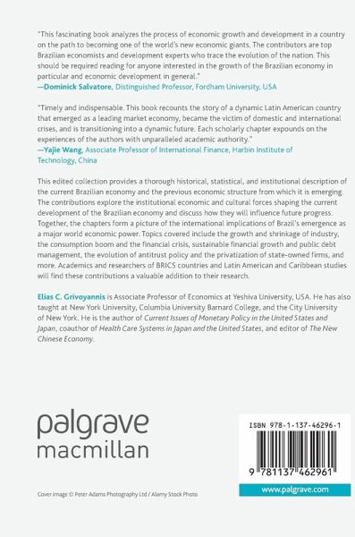 This edited collection provides a thorough historical, statistical, and institutional description of the current Brazilian economy and the previous economic structure from which it is emerging. The contributions explore the institutional economic and cultural forces shaping the current development of the Brazilian economy and discuss how they will influence future progress. Together, the chapters form a picture of the international implications of Brazil's emergence as a major world economic power. Topics covered include the growth and shrinkage of industry, the consumption boom and the financial crisis, sustainable financial growth and public debt management, the evolution of antitrust policy and the privatization of state-owned firms, and more. Academics and researchers of BRICS countries and Latin American and Caribbean studies will find these contributions a valuable addition to their research.