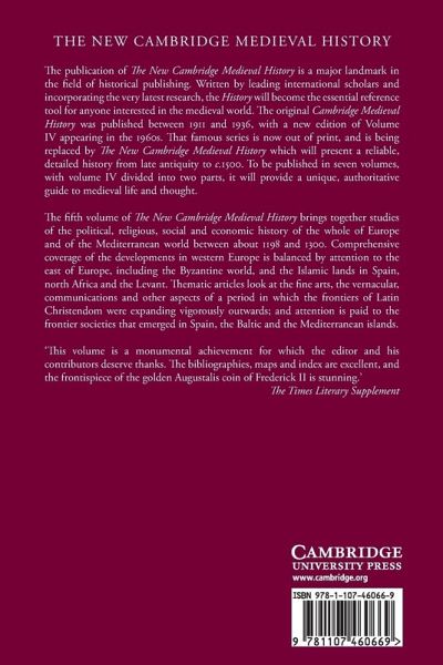 The fifth volume of The New Cambridge Medieval History brings together studies of the political, religious, social and economic history of the whole of Europe and of the Mediterranean world between about 1198 and 1300. Comprehensive coverage of the developments in western Europe is balanced by attention to the east of Europe, including the Byzantine world, and the Islamic lands in Spain, north Africa and the Levant. Thematic articles look at the fine arts, the vernacular, communications and other aspects of a period in which the frontiers of Latin Christendom were expanding vigorously outwards; and attention is paid to the frontier societies that emerged in Spain, the Baltic and the Mediterranean islands.