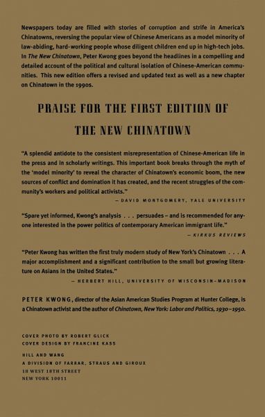 Newspapers today are filled with stories of corruption and strife in America's Chinatowns, reversing the popular view of Chinese Americans as a model minority of law-abiding, hard-working people whose diligent children end up in high-tech jobs. In The New Chinatown, Peter Kwong goes beyond the headlines in a compelling and detailed account of the political and cultural isolation of Chinese-American communities. This new edition offers a revised and updated text as well as a new chapter on Chinatown in the 1990s.