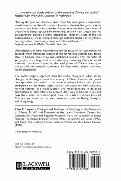 "During the past two decades urban China has undergone aremarkable transformation as the old system of central planning hasgiven way to domestic and international market forces. Aonce-distinctive model of urbanism is being replaced by somethingentirely new. Logan and his collaborators provide a highlydisciplined, coherent, state of the art examination of thesechanges through detailed studies of migration, housing reform,community change and other vital topics." Andrew Walder,Stanford University