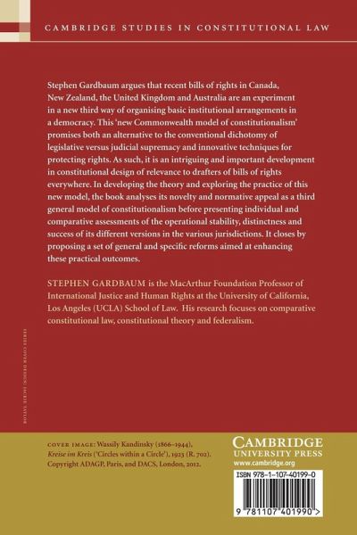Stephen Gardbaum argues that recent bills of rights in Canada, New Zealand, the United Kingdom and Australia are an experiment in a new third way of organizing basic institutional arrangements in a democracy. This 'new Commonwealth model of constitutionalism' promises both an alternative to the conventional dichotomy of legislative versus judicial supremacy and innovative techniques for protecting rights. As such, it is an intriguing and important development in constitutional design of relevance to drafters of bills of rights everywhere. In developing the theory and exploring the practice of this new model, the book analyses its novelty and normative appeal as a third general model of constitutionalism before presenting individual and comparative assessments of the operational stability, distinctness and success of its different versions in the various jurisdictions. It closes by proposing a set of general and specific reforms aimed at enhancing these practical outcomes.