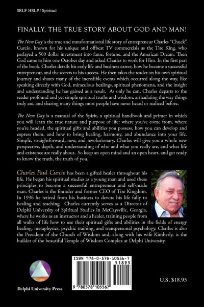 The New Day is the true and transformational story of entrepreneur Charles "Chuck" Curcio, known for his unique and offbeat TV commercials as the Tire King, who parlayed a 500 dollar investment into fame, fortune, and the American Dream. Then God came to him one October day and asked Charles to work for Him, with this simple instruction: "You are to learn about me and about you, and then teach others who they are too". Although initially he resisted, Charles agreed to serve God, and from that day forward his life changed dramatically, ultimately leading him to Delphi University of Spiritual Studies and the incredible world of God and Spirit that can be accessed and experienced directly by all people. In the first part of the book, Charles details his early life and business career, how he became a successful entrepreneur, and the secrets to his success. This is a must read for any serious entrepreneur and business owner. Charles then takes the reader on his own spiritual journey and shares many of the incredible events which occurred along the way, like speaking directly with God, miraculous healings, spiritual phenomena, and the insight and understanding he has gained as a result. As only he can, Charles departs to the reader profound and yet simple spiritual truths and wisdom, articulating the way things truly are, and sharing many things one has probably never heard or realized before, like the Principles of Energy, Life's Journey, Purpose, and Plan, Eternal Life and the Myths of Death, Heaven, and Hell, the Law of Karma, the True Nature and Cause of Dis-ease, and the Spiritual Powers & Gifts You Possess. The New Day is a manual of the Spirit, a spiritual handbook and primer in which you will learn the truth and purpose of life: where you've come from, where you're headed, the spiritual gifts and abilities you possess, how you can develop and express them, and how to bring healing, harmony, and abundance into your life. Simple, straightforward, new, and revolutionary, Charles will give you a whole new understanding, depth, and perspective of who and what you really are, and what life and existence are really about. Finally, the true story of man and God, our spiritual nature and our relationship to the Universe, and the reasons we come to earth, our purpose, plan, and mission. The New Day is an incredible story of Spirituality and Spiritual Awakening, Love, Miracles, Wisdom, and Spiritual truth, providing the reader with a true perspective about life, existence, life's purpose, and the ways things truly are. A spiritual handbook and primer, and a treasure of spiritual truth and principles, The New Day will finally answer the questions man has pondered within from the beginning of time: "Who am I, What am I, and What the heck am I doing here?" So keep an open mind and an open heart, and get ready to know the truth, the truth of life, your life's purpose, the truth of you. And learn how you can bring your own life into harmony, healing, and abundance.