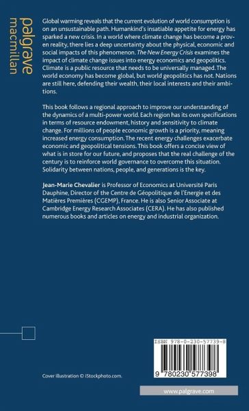 The New Energy Crisis comes from the recent intrusion of climate change issues into energy economics and geopolitics. Global warming reveals that the current evolution of the world energy consumption is on an unsustainable path. This book explores economic and geopolitical tensions and reinforces ways to overcome the crisis.