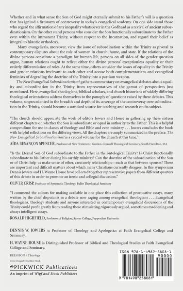 Whether and in what sense the Son of God might eternally submit to his Father's will is a question that has ignited a firestorm of controversy in today's evangelical academy. On one side stand those who regard the affirmation of any inequality whatsoever in the Godhead as a revival of ancient subordinationism. On the other stand persons who consider the Son functionally subordinate to the Father even within the immanent Trinity, without respect to the Incarnation, and regard their belief as integral to historic orthodoxy. Many evangelicals, moreover, view the issue of subordination within the Trinity as pivotal to contemporary disputes about the role of women in church, home, and state. If the relations of the divine persons constitute a paradigm for human life, persons on all sides of the gender question argue, human relations ought to reflect either the divine persons' exceptionless equality or their orderly differentiation of roles. At the same time, others consider the issues of equality in the Trinity and gender relations irrelevant to each other and accuse both complementarians and evangelical feminists of degrading the doctrine of the Trinity into a partisan weapon. The New Evangelical Subordinationism? gathers commentary on evangelical debates about equality and subordination in the Trinity from representatives of the gamut of perspectives just mentioned. Here, evangelical theologians, biblical scholars, and church historians of widely differing theological orientations address themselves to the panoply of questions raised by these debates. This volume, unprecedented in the breadth and depth of its coverage of the controversy over subordination in the Trinity, should become a standard source for teaching and research on its subject.