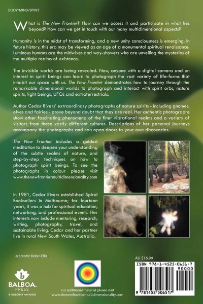 What is The New Frontier? How can we access it and participate in what lies beyond? How can we get in touch with our many multidimensional aspects? Humanity is in the midst of transforming, and a new unity consciousness is emerging. In future history, this era may be viewed as an age of a monumental spiritual renaissance. Luminous humans are the midwives and way-showers who are unveiling the mysteries of the multiple realms of existence. The invisible worlds are being revealed. Now, anyone with a digital camera and an interest in spirit beings can learn to photograph the vast variety of life-forms that inhabit our space with us. The New Frontier demonstrates how to journey through the remarkable dimensional worlds to photograph and interact with spirit orbs, nature spirits, light beings, UFOs and extraterrestrials. Author Cedar Rivers' extraordinary photographs of nature spirits - including gnomes, elves and fairies - prove beyond doubt that they are real. Her authentic photographs show other fascinating phenomena of the finer vibrational realms and a variety of visitors from these vastly different cultures. Descriptions of her personal journeys accompany the photographs and can open doors to your own discoveries. The New Frontier includes a guided meditation to deepen your understanding of the subtle realms of nature, and step-by-step techniques on how to photograph spirit beings. To see the photographs in colour please visit www.thenewfrontiermultidimensionality.com