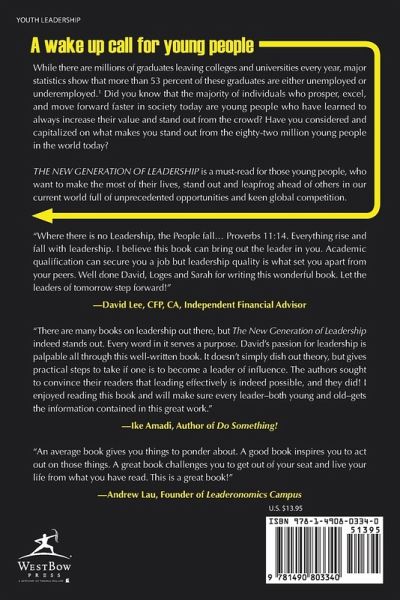 While there are millions of graduates leaving colleges and universities every year, major statistics show that more than 53 percent of these graduates are either unemployed or underemployed. In addition, many young people today fail to live up to their potential or even attempt to achieve their dreams due to lack of confidence in their abilities that often results from not being given permission to be and develop who they truly are. In THE NEW GENERATION OF LEADERSHIP, the authors gives outright that permission, and shares practical steps, inspiring stories and anecdotes, helpful principles, and uncommon truths in the nurturing of those innate qualities that will help young people increase their value, excel and stand out from the crowd.
