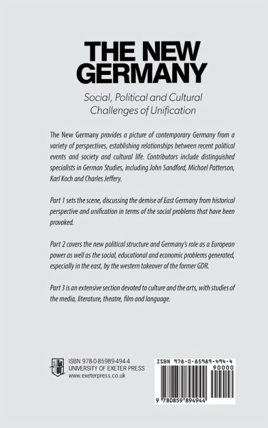 The New Germany provides a picture of contemporary Germany from a variety of perspectives, establishing relationships between recent political events and society and cultural life.