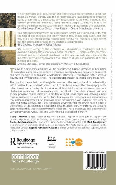George Martine is lead author of the United Nations Population Fund (UNFPA) report State of World Population 2007: Unleashing the Potential of Urban Growth, and a consultant in Brazil. Gordon McGranahan is the Head of the Human Settlements Group at the IIED. Mark Montgomery is a professor of economics at Stony Brook University, New York, and a senior associate at the Population Council. Rogelio Fernandez-Castilla is former Director of the Technical Support Division (TSD) of UNFPA.