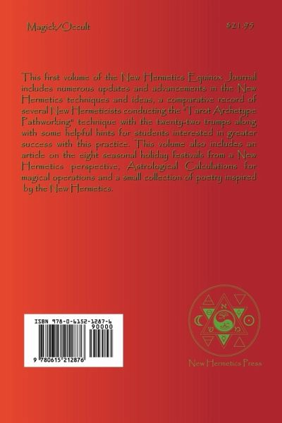 This first volume of the New Hermetics Equinox Journal includes numerous updates and advancements in the New Hermetics techniques and ideas, a comparative record of several New Hermeticists conducting the "Tarot Archetype Pathworking" technique with the twenty-two trumps along with some helpful hints for students interested in greater success with this practice. This volume also includes an article on the eight seasonal holiday festivals from a New Hermetics perspective, astrological calculations for magical operations and a small collection of poetry inspired by the New Hermetics.
