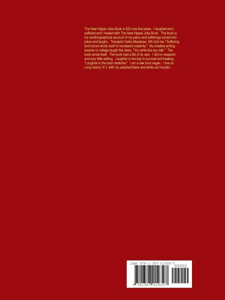The New Hippie Joke Book is 832 one-line jokes. It is my autobiographical account of my pains and sufferings turned into laughs and jokes. Therapist Cathy Meadows, MA told me,""Suffering and torture lends itself to increased creativity."" A creative writing teacher in college taught the class, ""You write like you talk."" The New Hippie Joke Book wrote itself and had a life of its own. I did no research and very little editing of The New Hippie Joke Book. I ""winged"" the book. Laughter is the key to survival and healing. ""Laughter is the best medicine."" ""We can put this out and see where it goes. Can we protect him when it comes through the nose? Poehler wouldn't like it. Either would Fey. Woody wouldn't like it. ""HAVE A NICE DAY!""(an agent's joke) ""It's the end of Times. Time to renew. Be a Jew."" ""On the Jewish New Year they celebrate at the Matza Ball."" ""What is a Buddha pest? Someone that's Hungary."" ""The hippies are back. Without the acid, with the alkaline.""