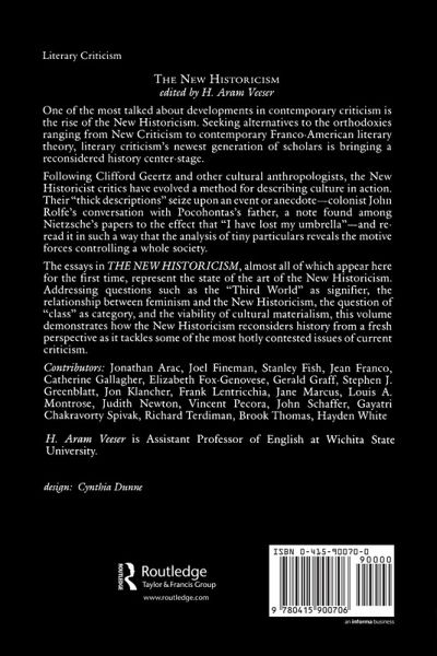 Chapter 1 Towards a Poetics of Culture Stephen Greenblatt; Chapter 2 Professing the Renaissance: The Poetics and Politics of Culture Louis A. Montrose; Chapter 3 Marxism and The New Historicism Catherine Gallagher; Chapter 4 The History of the Anecdote: Fiction and Fiction Joel Fineman; Chapter 5 English Romanticism and Cultural Production Jon Klancher; Chapter 6 The Use and Misuse of Giambattista Vico: Rhetoric Orality and Theories of Discourse John D. Schaeffer; Chapter 7 The Sense of the Past: Image Text and Object in the Formation of Historical Consciousness in Nineteenth-Century Britain Stephen Bann; Chapter 8 The Struggle for the Cultural Heritage: Christina Stead Refunctions Charles Dickens and Mark Twain Jonathan Arac; Chapter 9 The Asylums of Antaeus: Women War and Madness-Is there a Feminist Fetishism? Jane Marcus; Chapter 10 History as Usual? Feminism and the "New Historicism" Judith Lowder Newton; Chapter 11 Co-optation Gerald Graff; Chapter 12 The New Historicism and other Old-fashioned Topics Brook Thomas; Chapter 13 The Nation as Imagined Community Jean Franco; Chapter 14 Literary Criticism and the Politics of the New Historicism Elizabeth Fox-Genovese; Chapter 15 Is there Class in this Class? Richard Terdiman; Chapter 16 Foucault's Legacy-A New Historicism? Frank Lentricchia; Chapter 17 The Limits of Local Knowledge Vincent P. Pecora; Chapter 18 The New Historicism: Political Commitment and the Postmodern Critic Gayatri Chakravorty Spivak; Chapter 19 New Historicism: A Comment Hayden White; commentary Commentary: The Young and the Restless Stanley Fish;