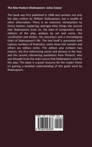 This book is based on an edition first published in 1908 and contains not only the play written by William Shakespeare, but a wealth of other information. There is an extensive introduction by Henry Hudson, explaining, amongst other things: the sources that Shakespeare drew on, the date of composition, early editions of the play, analysis by act and scene, the versification and diction, the characters and a chronological chart of Shakespeare's life. The text itself is presented with copious numbers of footnotes, some show text variants and others are editors notes. This edition also contains two indexes, the first referencing words and phrases in the text, and the second referencing quotations from Plutarch, who was thought to be the main source that Shakespeare used for this play. This book is a great resource for the reader intent on gaining a detailed understanding of this great work by Shakespeare.