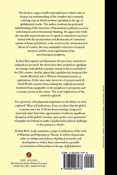 This major intellectual exploration seeks to deepen our understanding of the way in which modern capitalism works. The author argues, in particular, that it has always rested in part on the unremunerated labour of women, the non-sustainable extraction of natural resources and the racist exploitation of the non-European periphery. Robert Biel explains and illuminates how it has integrated the South into a Western-dominated system of exploitation and prevented it from making the promised transition from marginality on the periphery to prosperity at the centre. And the racist implications of this. He also explores two fundamental questions. Are there really any indications that the global economy is slowly entering a long-term structural crisis? And would any significant disruption open up opportunities for new popular movements to fundamentally challenge it? Robert Biel's work constitutes a major revitalisation of the tools of Marxism and Dependency Theory. In addition to scholars of political economy and development, it will interest activists seeking to reconstitute left politics in the age of globalisation.