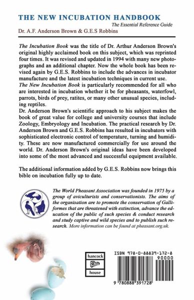The Incubation Book was the title of Dr. Arthur Anderson Brown's original highly acclaimed book on this subject, which was reprinted four times. It was revised and updated in 1994 with many new photographs and an additional chapter. Now the whole book has been revised again by G.E.S. Robbins to include the advances in incubator manufacture and the latest incubation techniques in current use. The New Incubation Book is particularly recommended for all who are interested in incubation whether it be for pheasants, waterfowl, parrots, birds of prey, ratites, or many other unusual species, including reptiles. Dr. Anderson Brown's scientific approach to his subject makes the book of great value for college and university courses that include Zoology, Embryology and Incubation. The practical research by Dr. Anderson Brown and G.E.S. Robbins has resulted in incubators with sophisticated electronic control of temperature, turning and humidity. These are now manufactured commercially for use around the world. Dr. Anderson Brown's original ideas have been developed into some of the most advanced and successful equipment available. The additional information added by G.E.S. Robbins now brings this bible on incubation fully up to date.