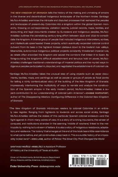 The New Kingdom of Granada tells the history of the making and unmaking of empire in the diverse and decentralized Indigenous landscapes of the Northern Andes. Santiago Muñoz-Arbeláez examines the intricate and disputed processes that reshaped the peoples and landscapes of present-day Colombia into a kingdom within the global Spanish monarchy. Drawing on correspondence, visitation reports, judicial records, maps, textiles, and accounting and legal documents created by Europeans and Indigenous peoples, Muñoz-Arbeláez outlines the painstaking century-long effort between 1530 and 1630 to consolidate the kingdom. A diverse group of people that included Indigenous interpreters, scribes, and intellectuals spearheaded these projects, which eventually expanded colonial control outward from its base in the highland Andean plateaus down to the lowland river valleys. Meanwhile, autonomous Indigenous political projects constantly threatened imperial rule, as rebels often encircled the kingdom and seized the corridors that linked it to Spain. By foregrounding the kingdom's difficult establishment and tenuous hold on power, Muñoz-Arbeláez challenges traditional understandings of imperial politics and the myriad ways Indigenous peoples participated in, disputed, and negotiated the establishment of colonial rule.