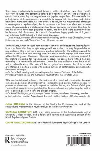 This book provides a timely exploration and comparison of key concepts in the theories of Melanie Klein and Jacques Lacan, two thinkers and clinicians whose influence over the development of psychoanalysis in the wake of Freud has been profound and far-reaching. Whilst the centrality of the unconscious is a strong conviction shared by both Klein and Lacan, there are also many differences between the two schools of thought and the clinical work that is produced in each. The purpose of this collection is to take seriously these similarities and differences. Deeply relevant to both theoretical reflection and clinical work, the New Klein-Lacan Dialogues should make interesting reading for psychoanalysts, psychotherapists, mental health professionals, scholars and all those who wish to know more about these two leading figures in the field of psychoanalysis.The collection centres around key concepts such as: 'symbolic function', the 'ego', the 'object', the 'body', 'trauma', 'autism', 'affect' and 'history and archives'.